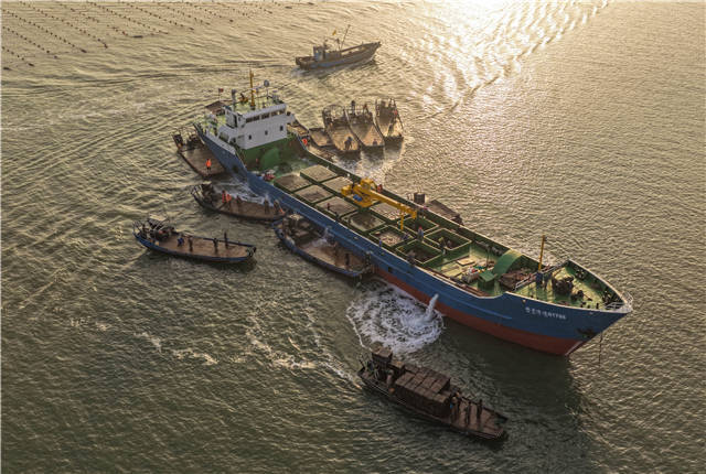 4月18日,首批500多万头在福建“越冬”的荣成寻山鲍鱼,经过一个冬天的生长,顺利北归,抵达荣成爱伦湾寻山鲍鱼港。