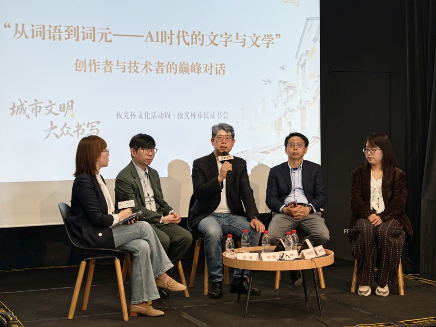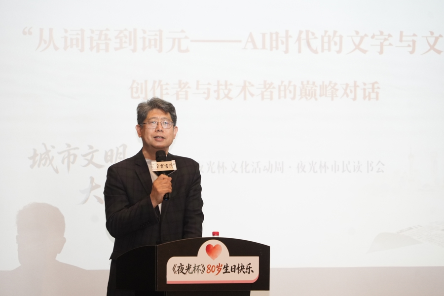 5月1日,是中国报纸历史上最悠久的副刊新民晚报《夜光杯》创刊80周年的日子,以此为契机,我们与广大读者和作者相聚在夜光杯市民读书会,共同开启夜光杯文化活动周。今天,夜光杯市民读书会以全日三场活动拉开系列活动的帷幕。上午,首场活动,在位于上海中心的朵云书院旗舰店,创作者与技术者展开了一场巅峰对话,从词语到词元,在文学与科技的碰撞中,探讨“AI时代的文字与文学”。